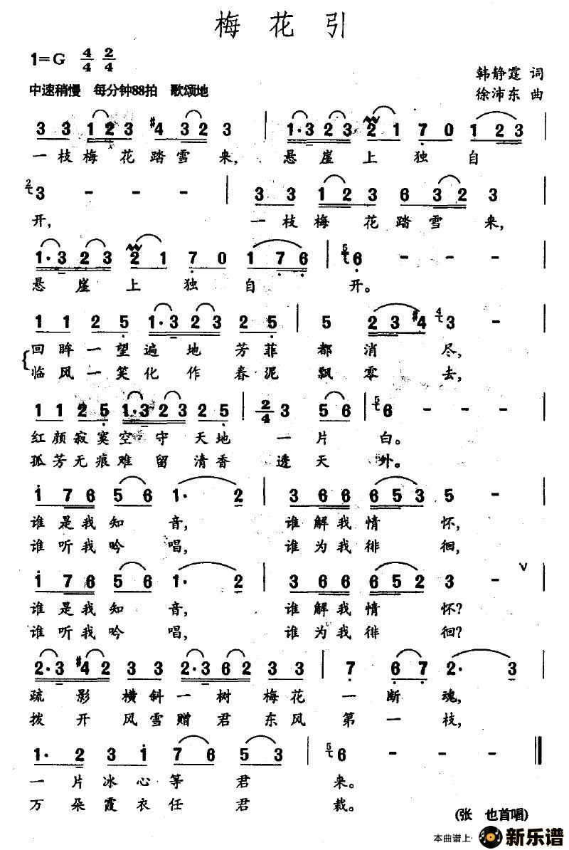 演唱的梅花引歌词,梅花引最新曲谱.