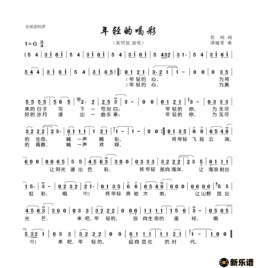 高明骏演唱的年轻的喝彩歌词,年轻的喝彩最新曲谱.