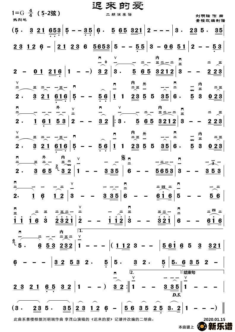 景楼演唱的迟来的爱歌词,迟来的爱最新曲谱.