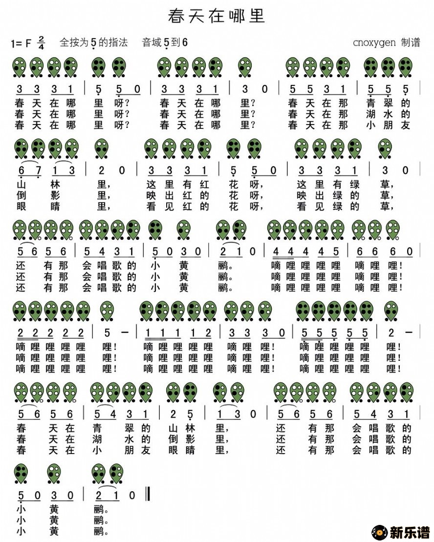 演唱的春天在哪里歌词,春天在哪里最新曲谱.