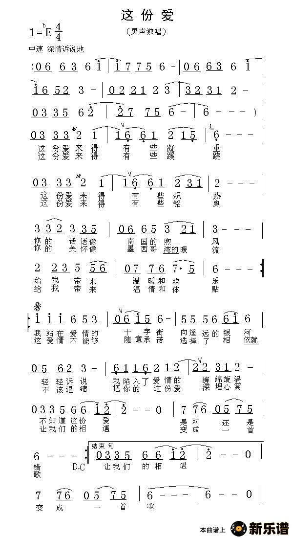 演唱的这份爱歌词,这份爱最新曲谱.