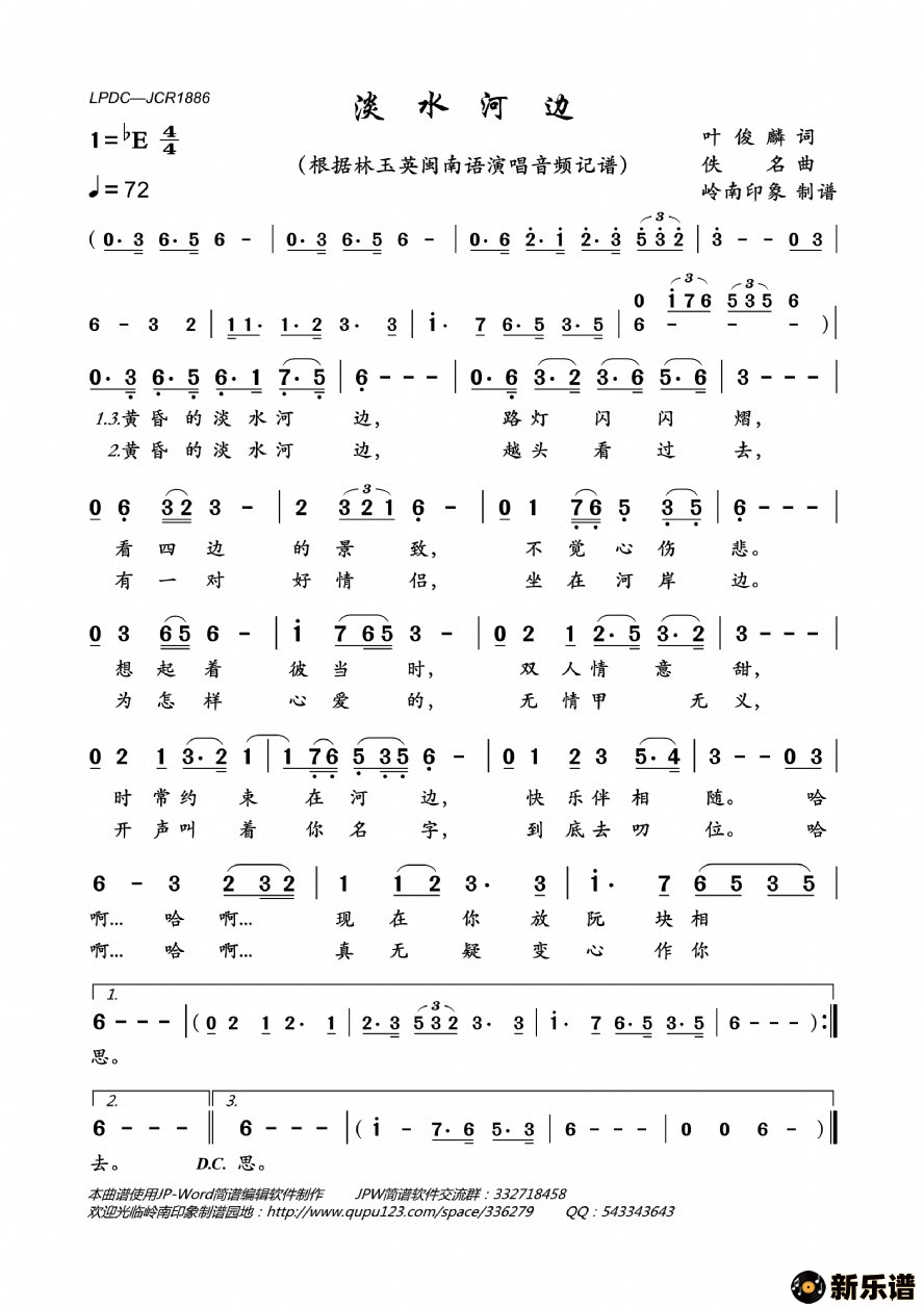 《淡水河边》最新曲谱 林玉英-岭南印象制谱