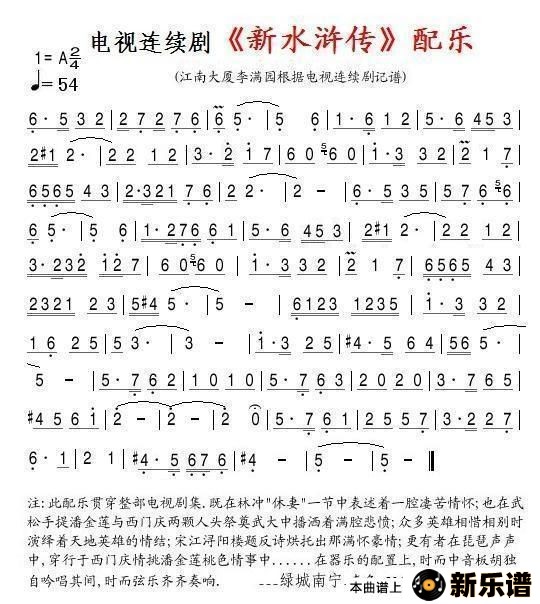 > 电视连续剧《新水浒传》配乐最新曲谱