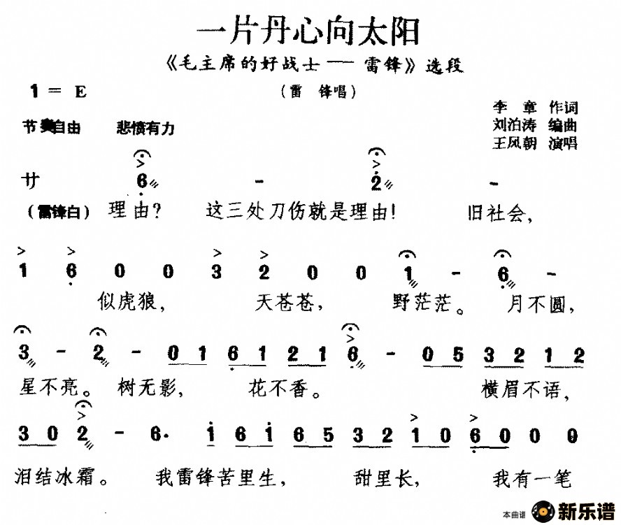 作词:李章 作曲:刘伯涛(《毛主席的好战士——雷锋》选段 雷锋唱)
