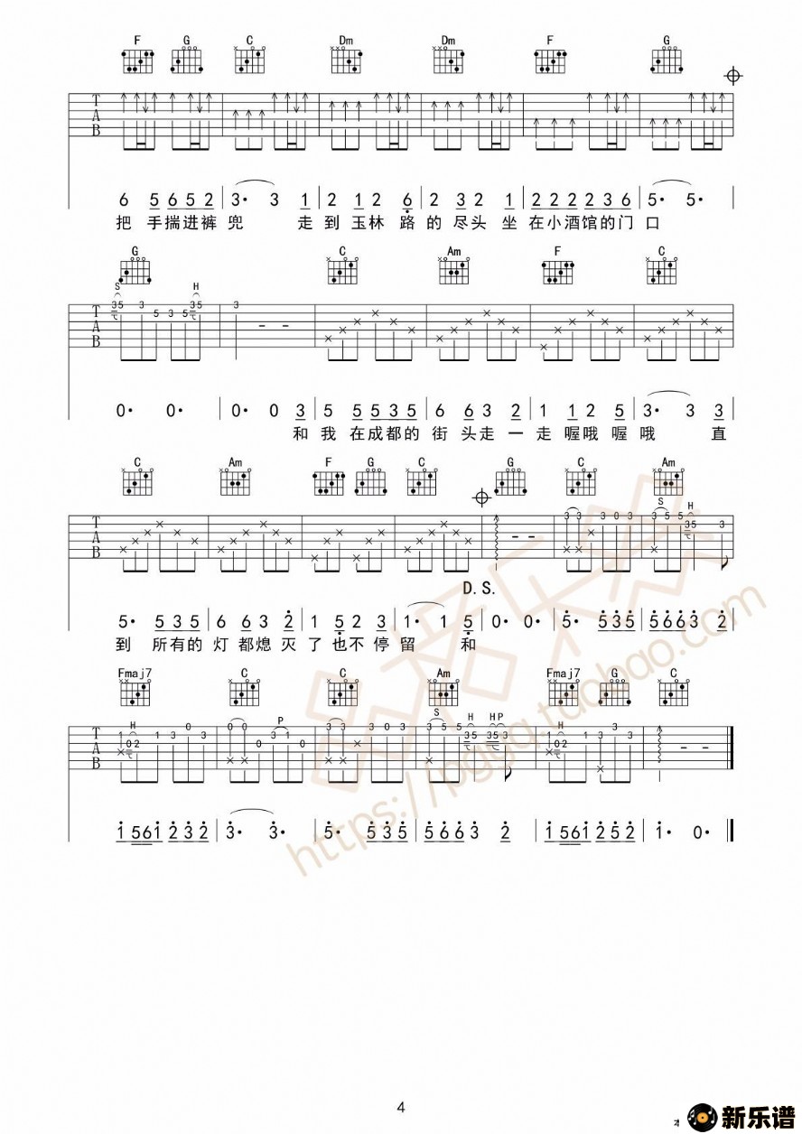《成都》最新曲谱 赵雷