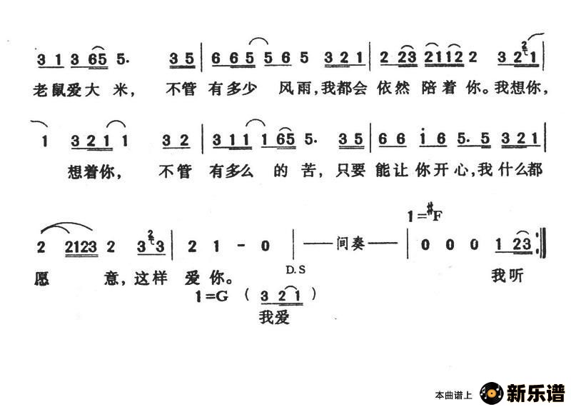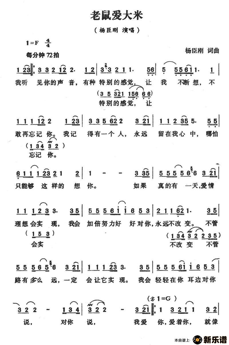 杨臣刚演唱的老鼠爱大米歌词,老鼠爱大米最新曲谱.