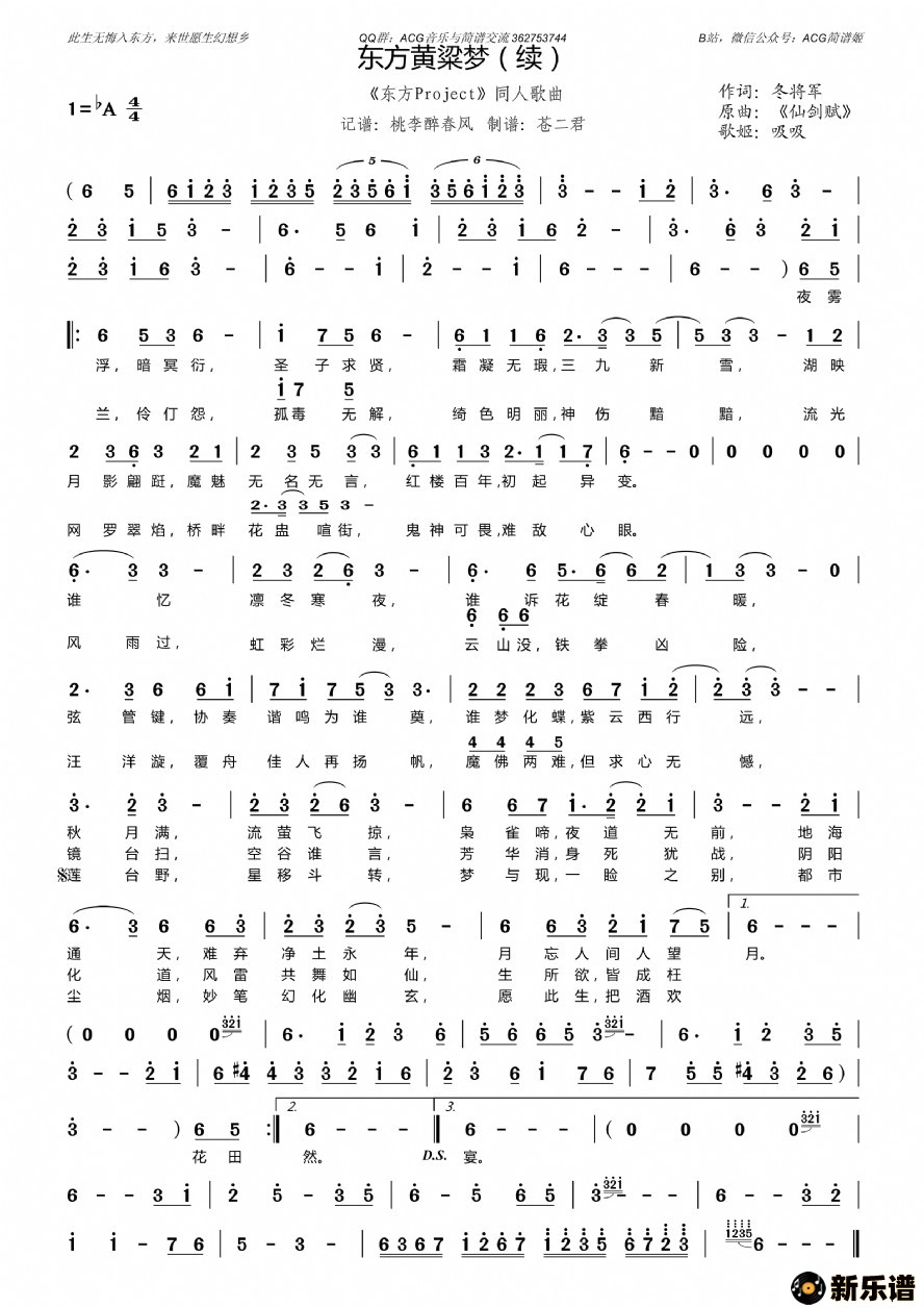 《东方黄粱梦》最新曲谱 吸吸-苍二君制谱