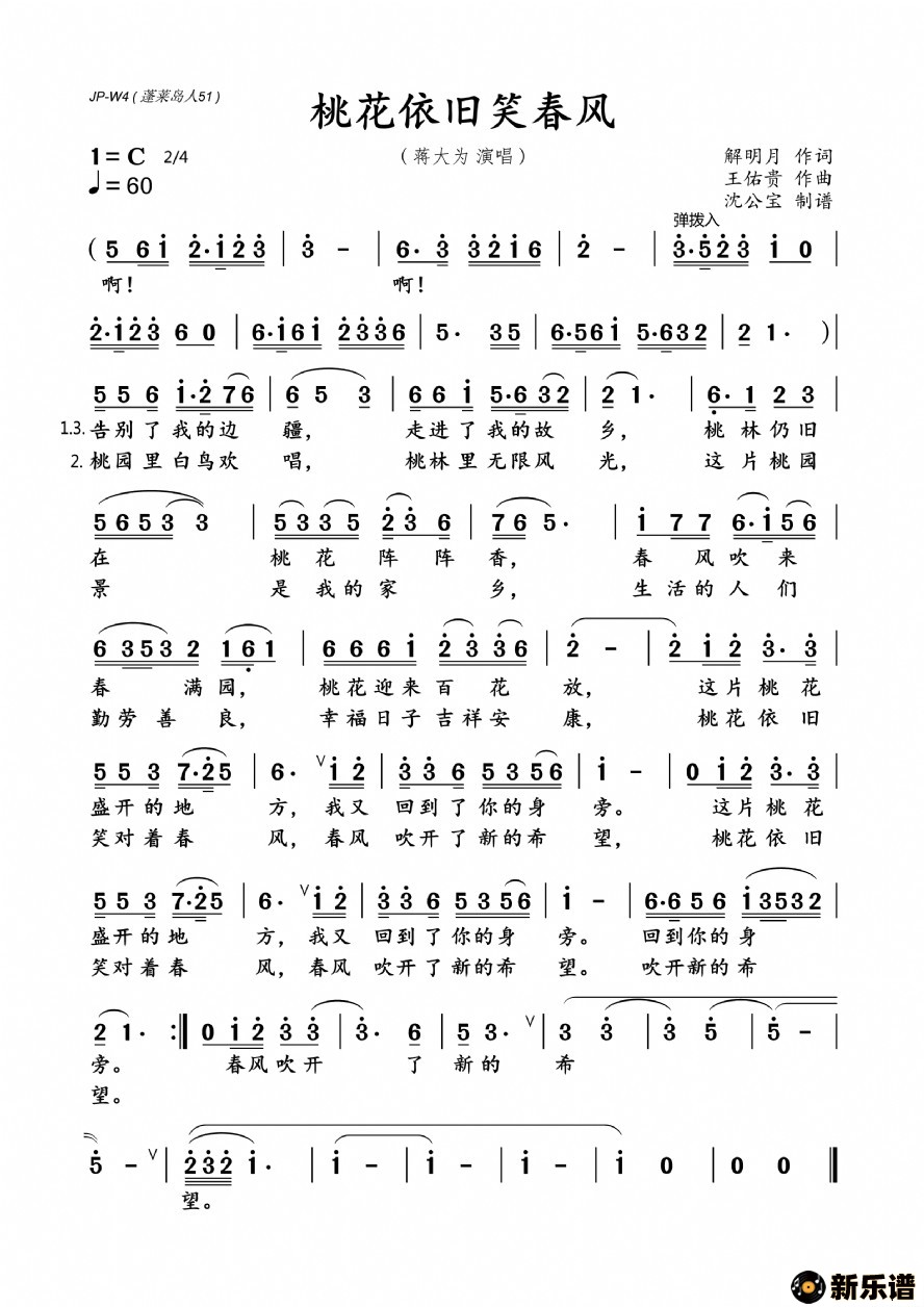 蒋大为演唱的桃花依旧笑春风歌词,桃花依旧笑春风最新曲谱.