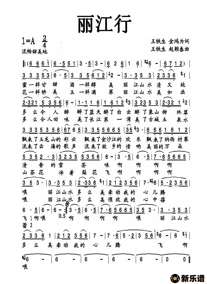 阎维文演唱的丽江行歌词,丽江行最新曲谱.