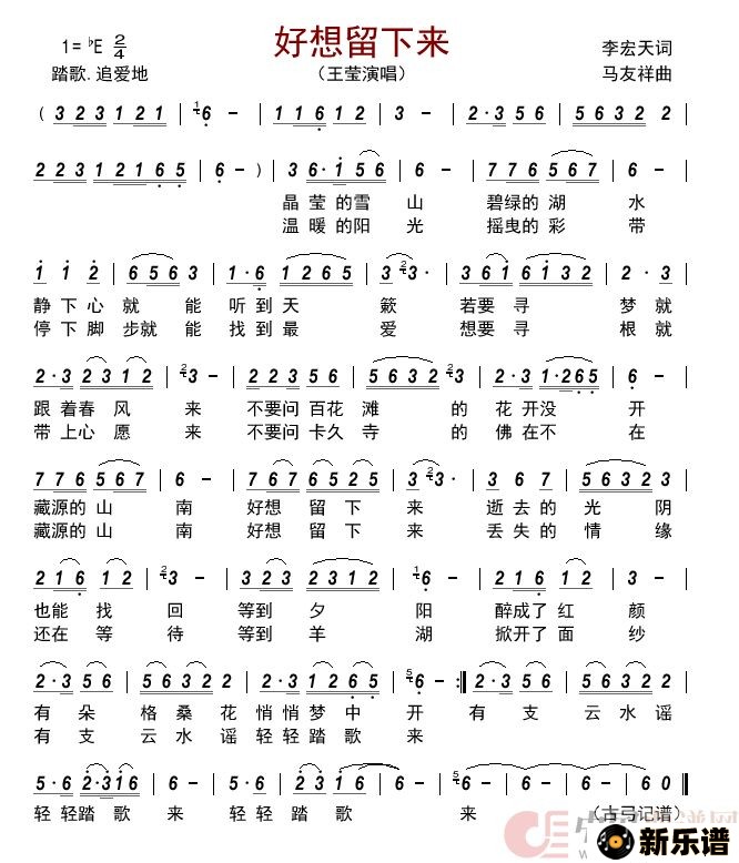 王莹演唱的好想留下来 歌词,好想留下来 最新曲谱.