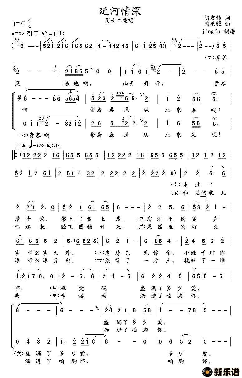 王宏伟、雷佳演唱的延河情深歌词,延河情深最新曲谱.