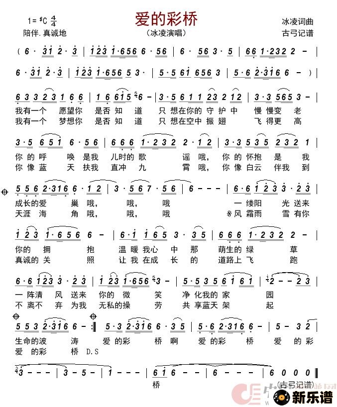 冰凌演唱的爱的彩桥 歌词,爱的彩桥 最新曲谱.