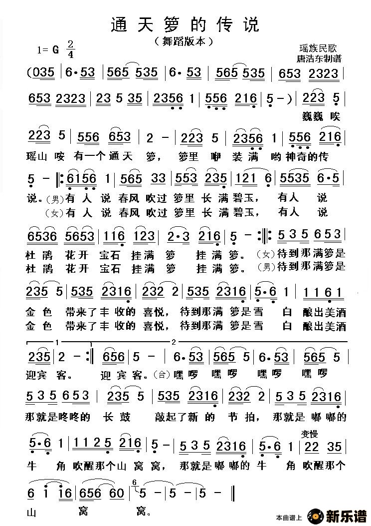 演唱的通天箩的传说歌词,通天箩的传说最新曲谱.