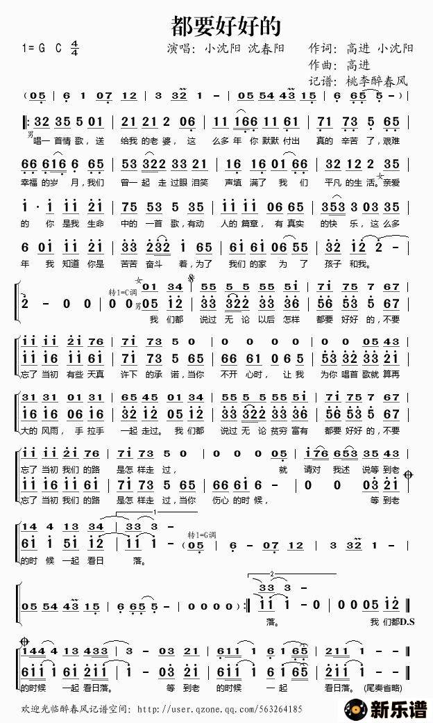 小沈阳、沈春阳演唱的都要好好的歌词,都要好好的最新曲谱.