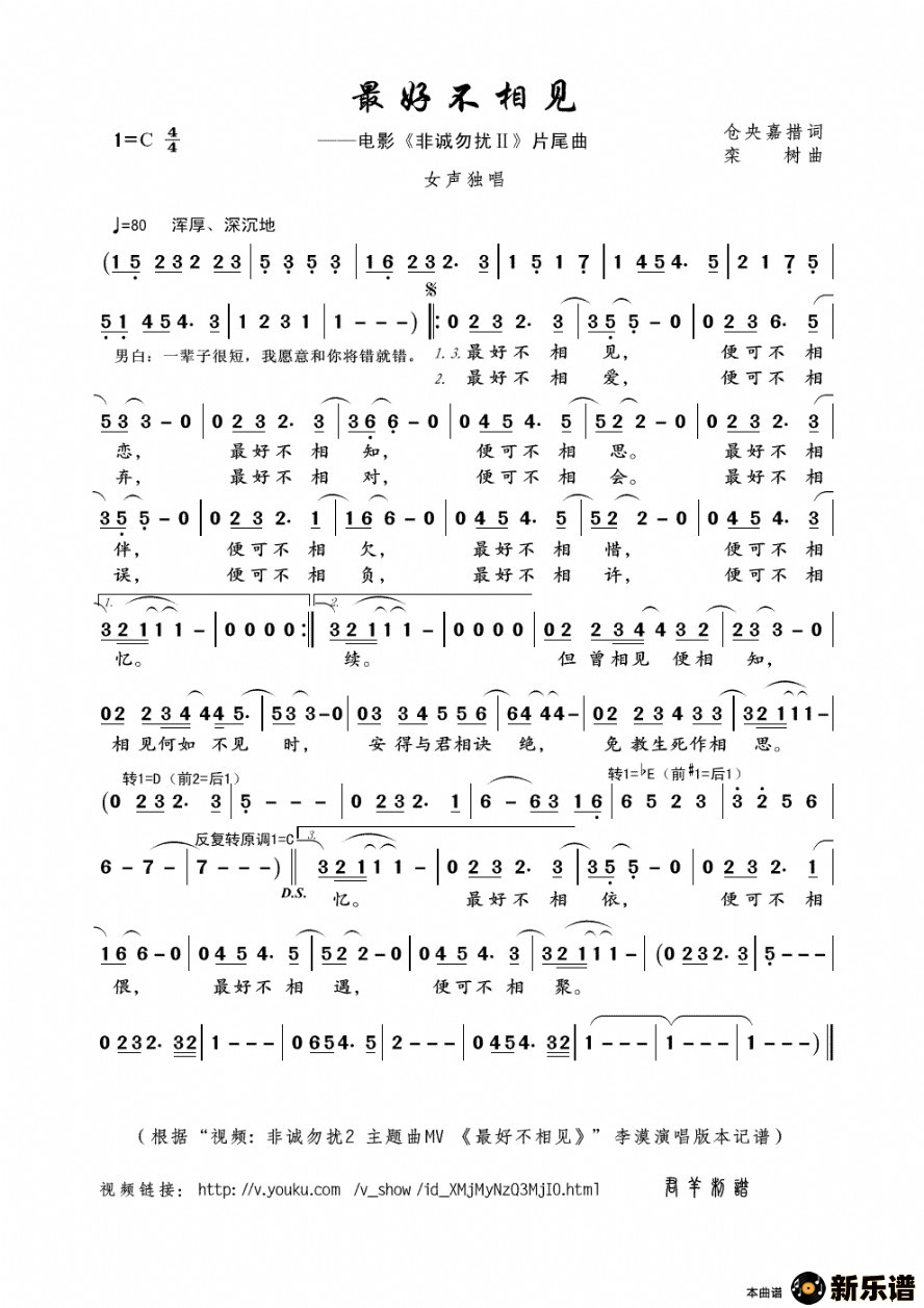 《最好不相见》最新曲谱 李漠-君羊制谱