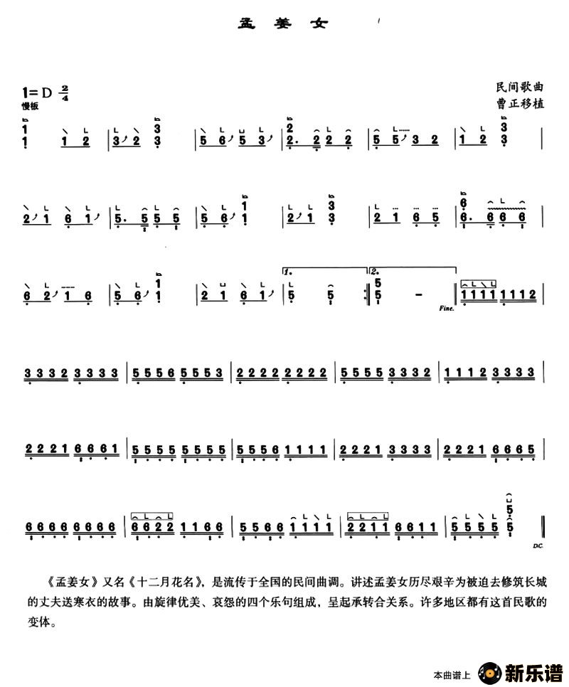 > 孟姜女最新曲谱