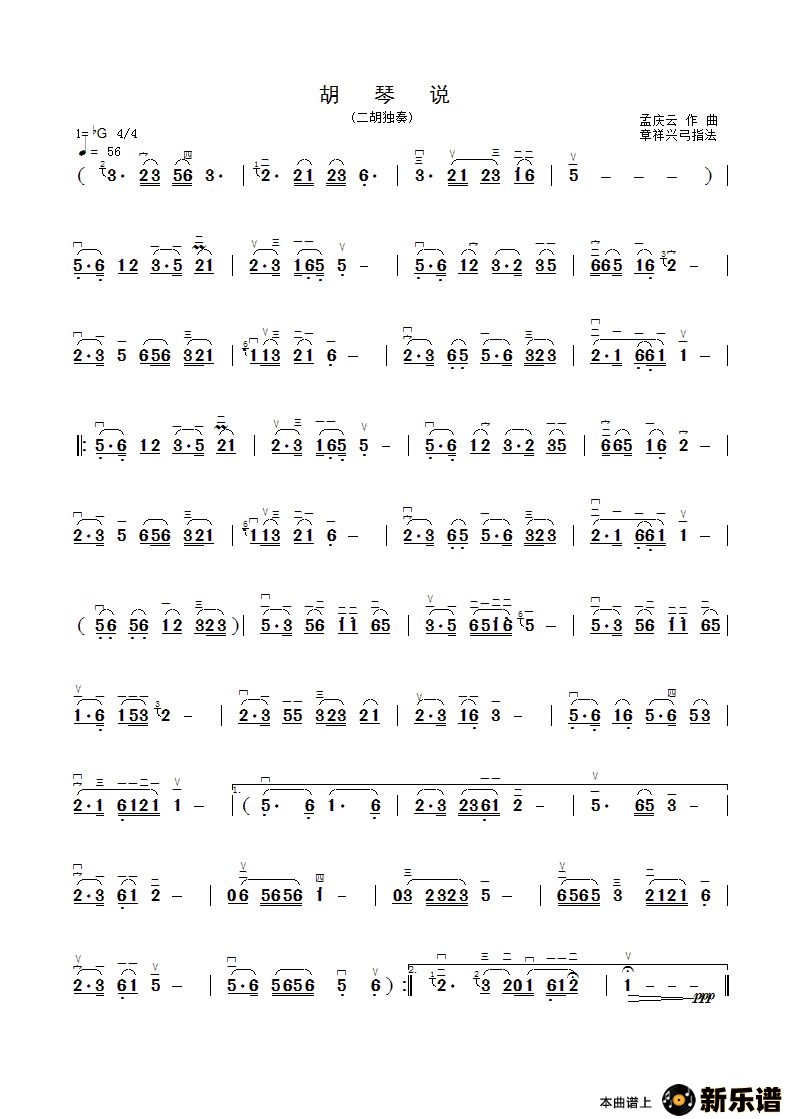 演唱的胡琴说歌词,胡琴说最新曲谱.