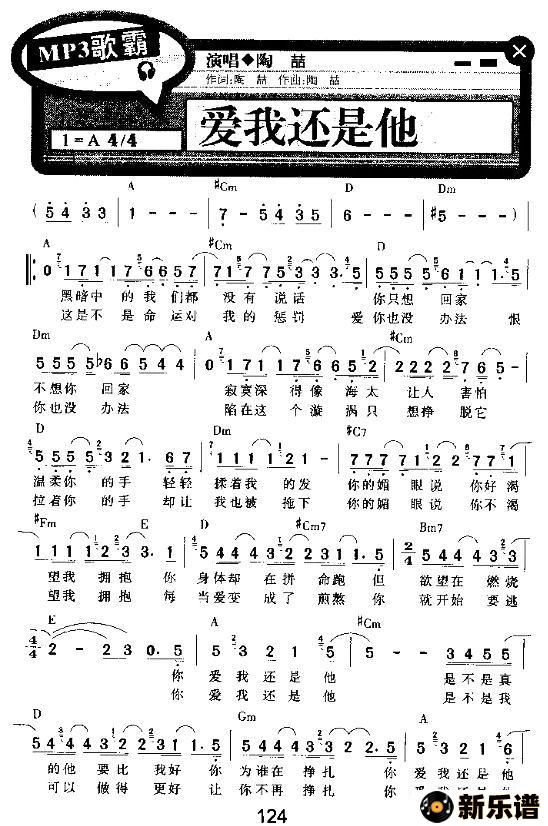 演唱的爱我还是他歌词,爱我还是他最新曲谱.