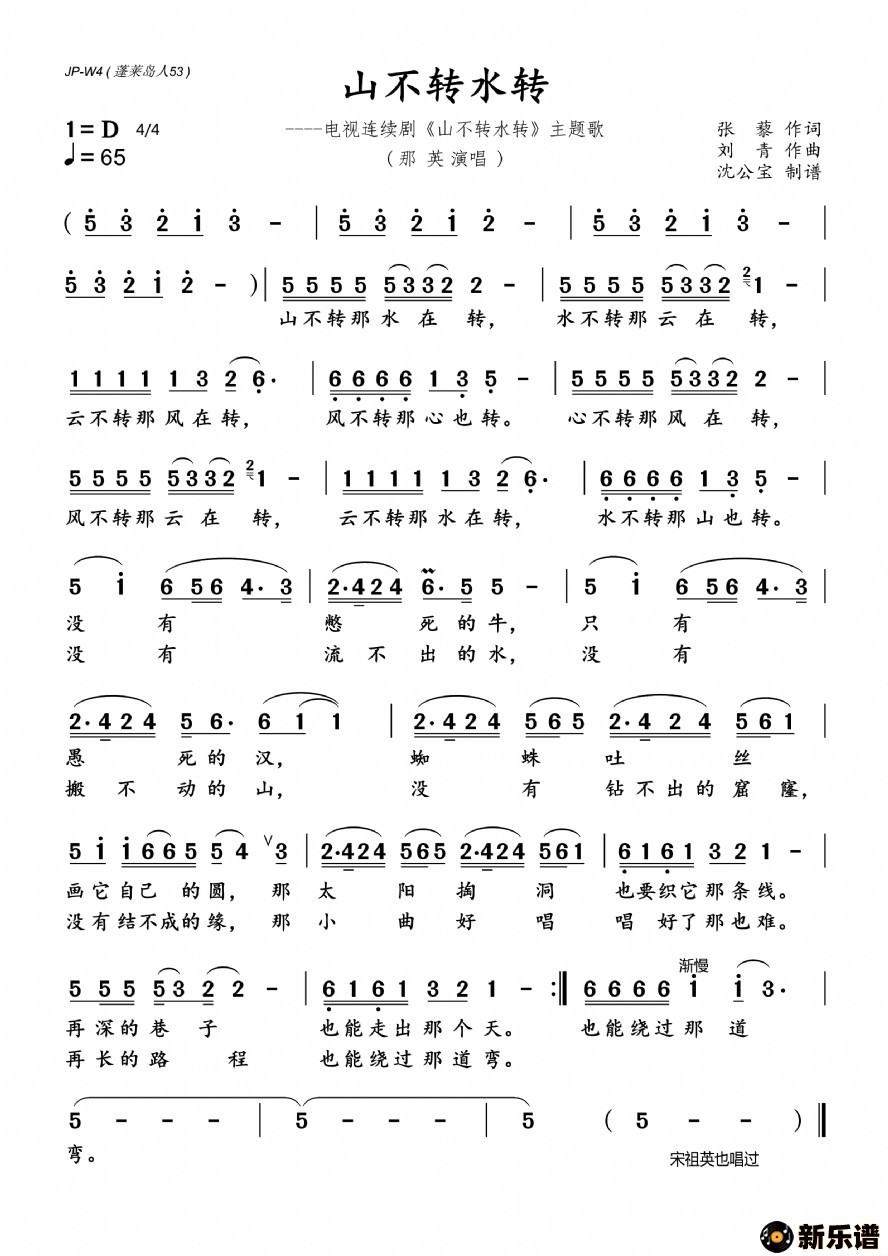 《山不转水转》最新曲谱 那英-沈公宝制谱