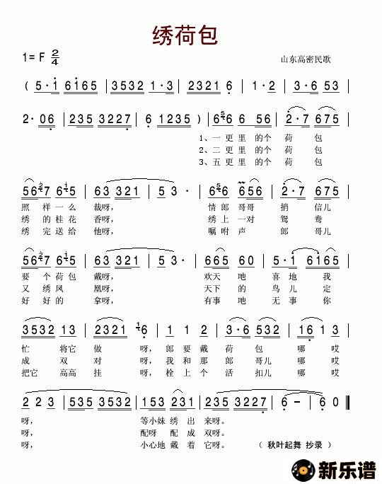 演唱的绣荷包歌词,绣荷包最新曲谱.