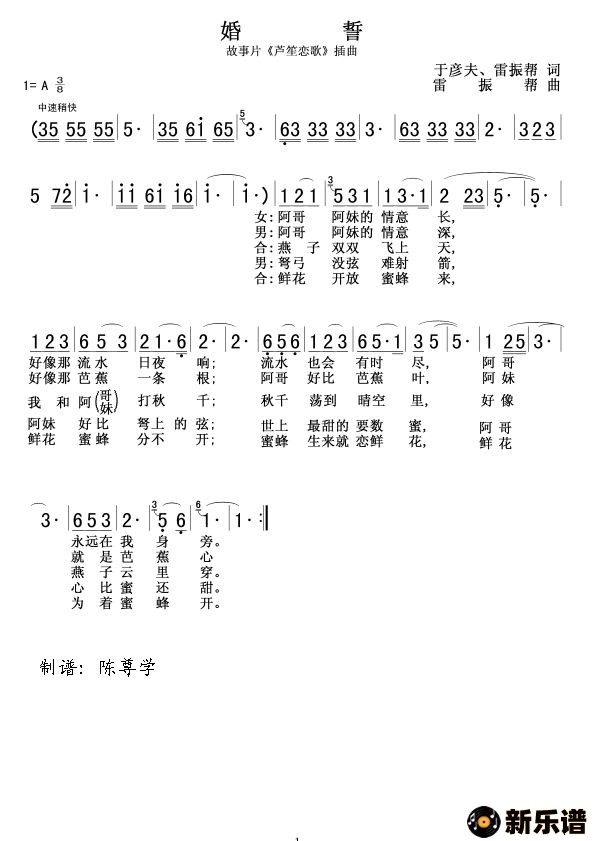 婚誓(电影《芦笙恋歌》插曲、五线谱)最新曲谱