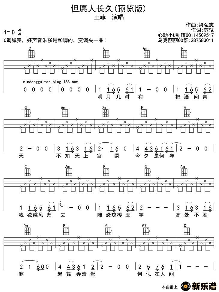 作词:苏轼 作曲:梁弘志(ukulele四线谱)