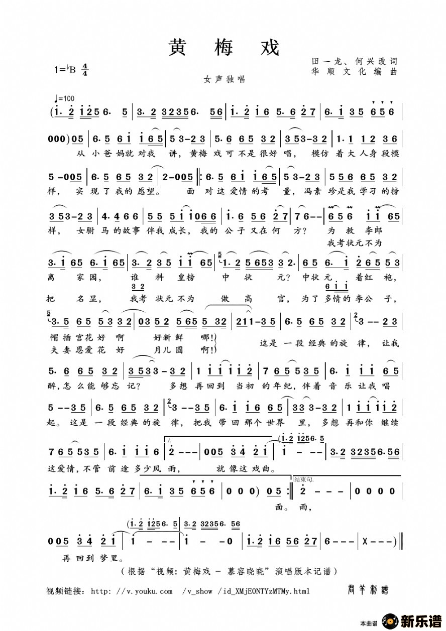 《黄梅戏》最新曲谱 慕容晓晓-君羊制谱