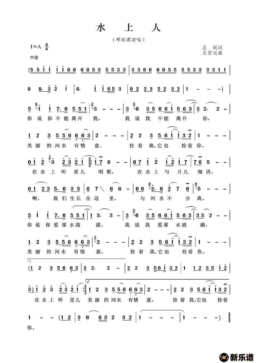 邓丽君演唱的水上人)歌词,水上人)最新曲谱.