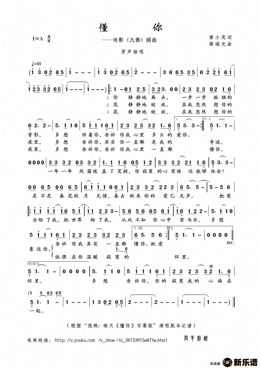 皓天演唱的懂你歌词,懂你最新曲谱.