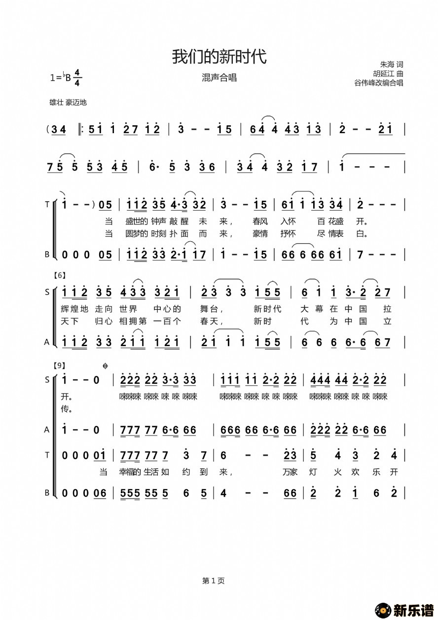 谷伟峰改编演唱的我们的新时代歌词,我们的新时代最新曲谱.