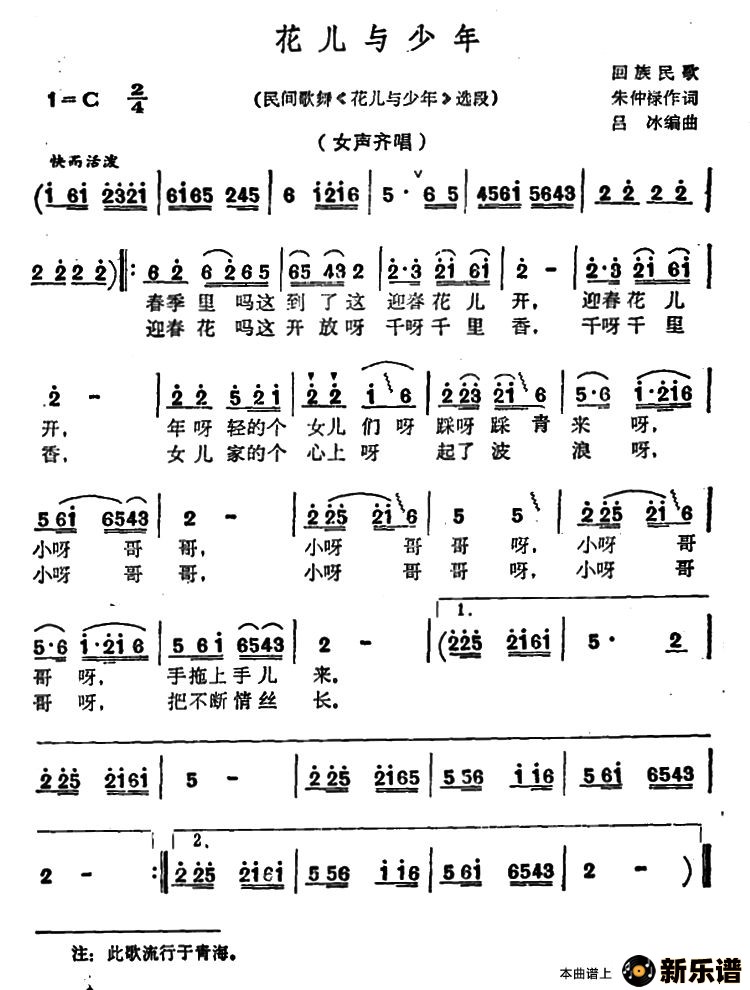 演唱的花儿与少年歌词,花儿与少年最新曲谱.