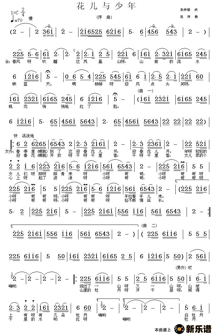 演唱的花儿与少年歌词,花儿与少年最新曲谱.