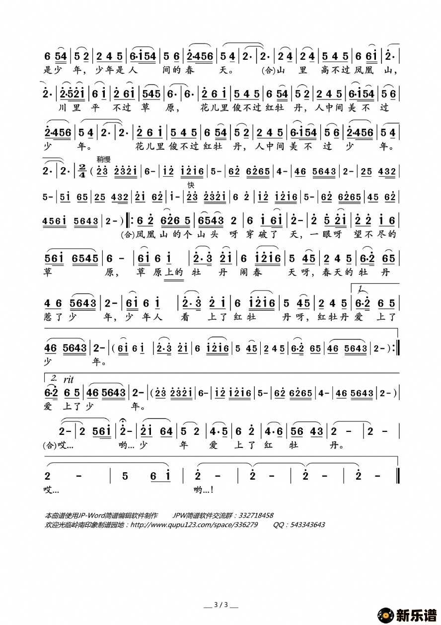 《花儿与少年》最新曲谱 -岭南印象制谱