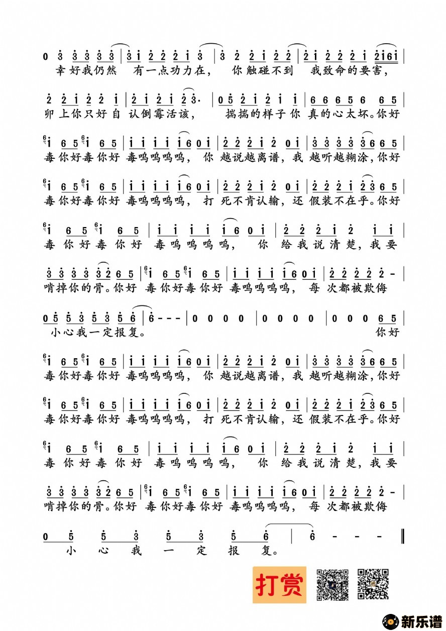 > 你好毒最新曲谱