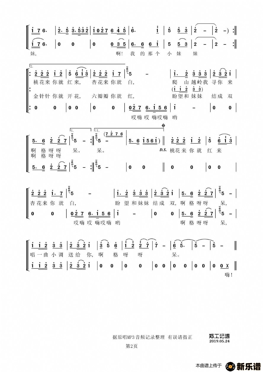 小调情歌桃花红简谱