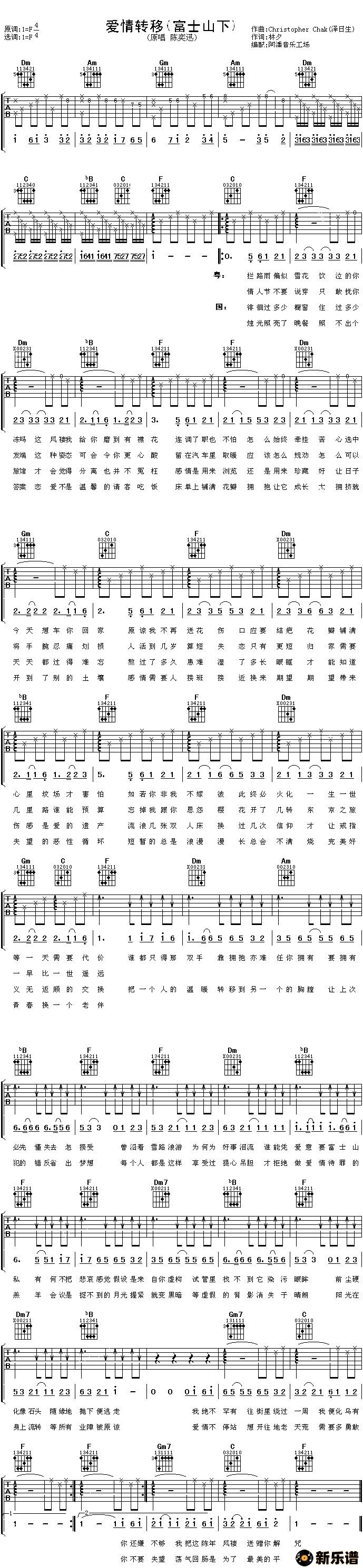 陈奕迅演唱的爱情转移歌词,爱情转移最新曲谱.