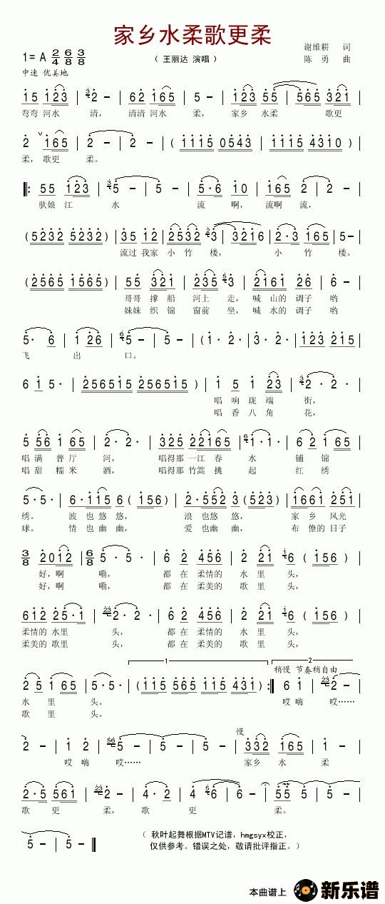 《家乡水柔歌更柔》最新曲谱 王丽达