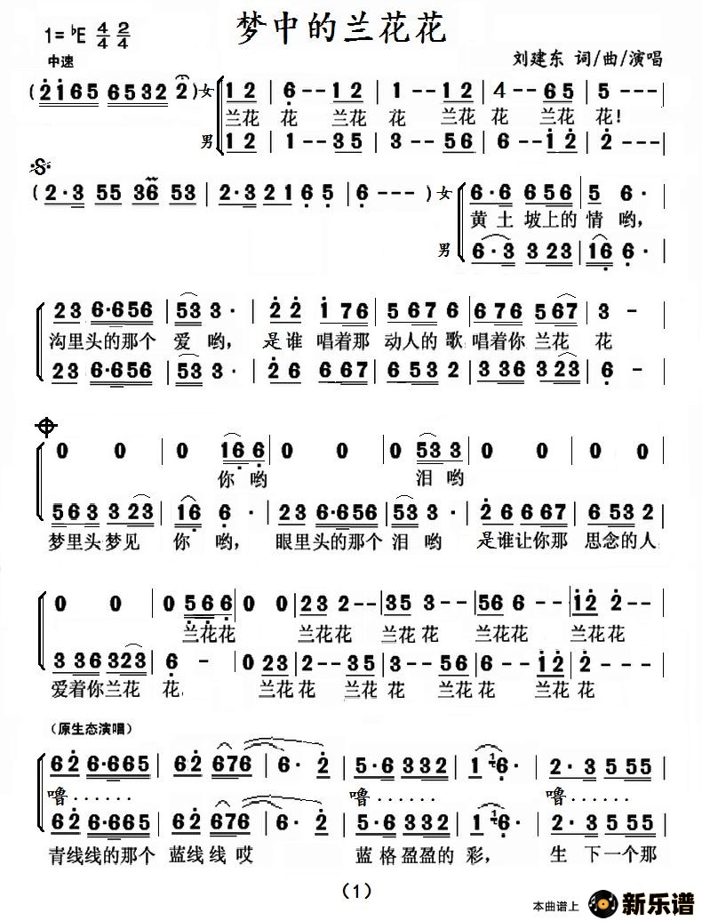 刘建东演唱的梦中的兰花花歌词,梦中的兰花花最新曲谱.
