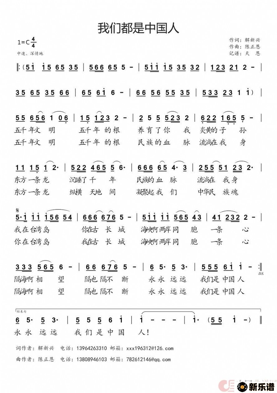 演唱的我们都是中国人歌词,我们都是中国人最新曲谱.