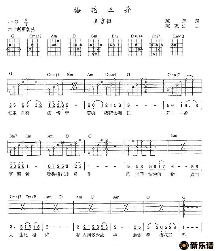姜育恒演唱的梅花三弄歌词,梅花三弄最新曲谱.