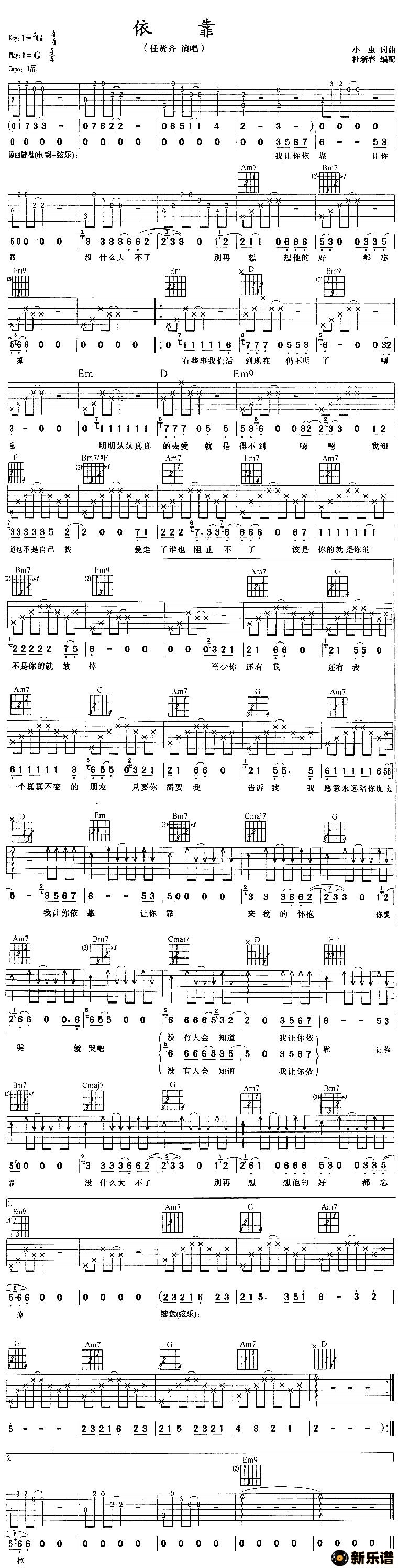 任贤齐演唱的依靠歌词,依靠最新曲谱.