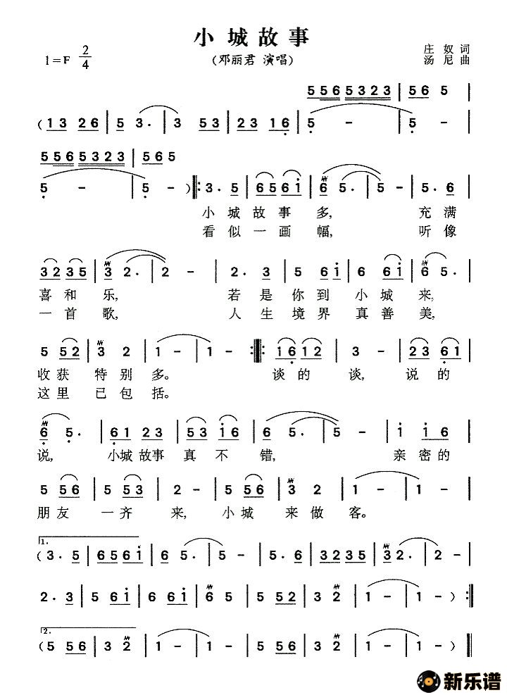 邓丽君演唱的小城故事歌词,小城故事最新曲谱.