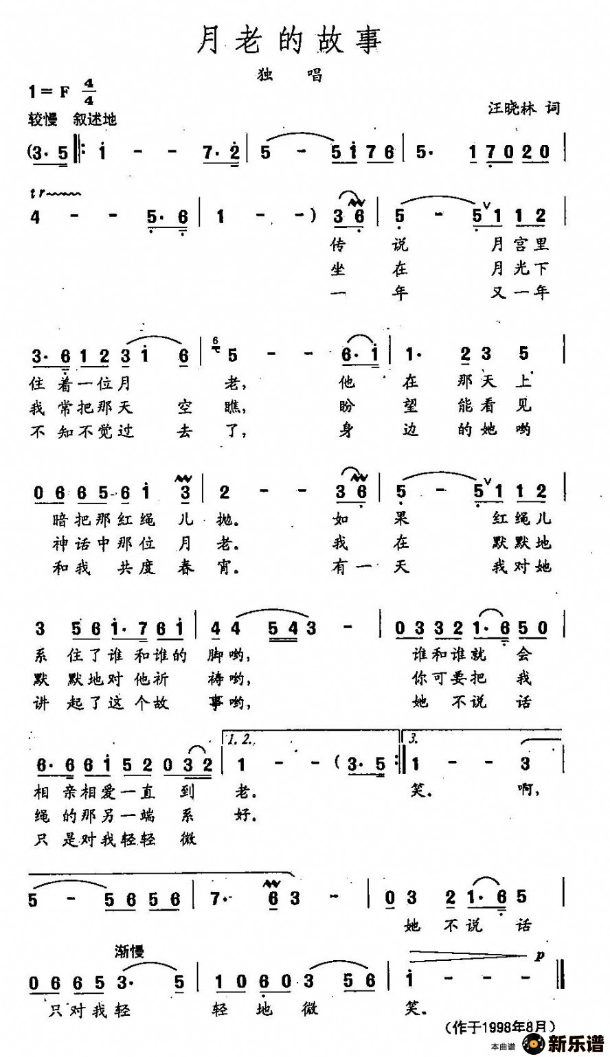 演唱的田光歌曲选-239月老的故事歌词,田光歌曲选-239月老的故事最新曲谱.