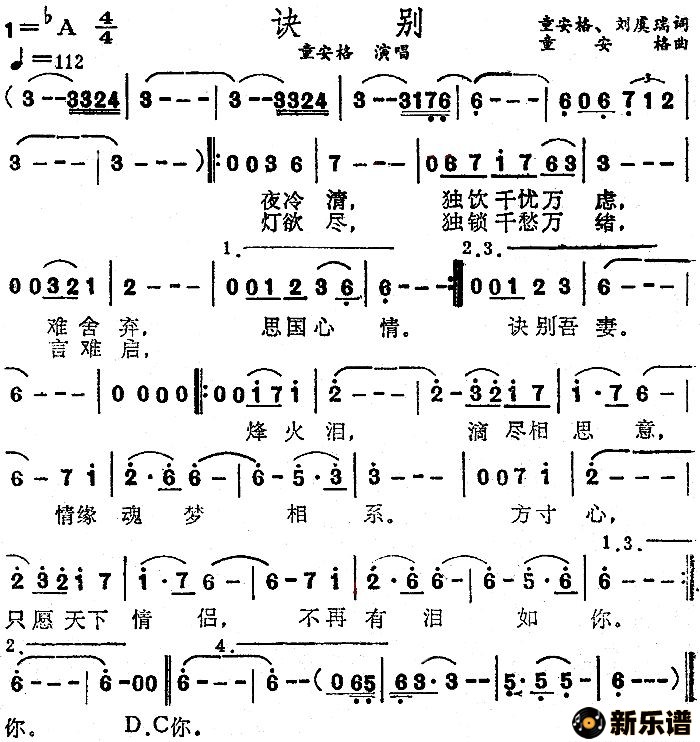 童安格演唱的诀别歌词,诀别最新曲谱.