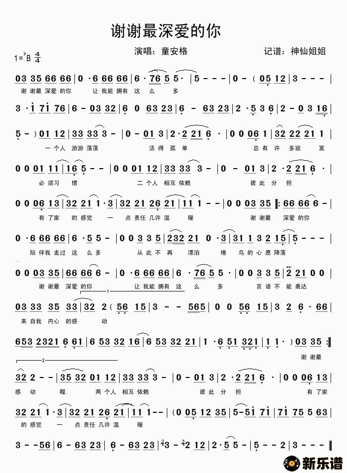 童安格演唱的谢谢最深爱的你歌词,谢谢最深爱的你最新曲谱.