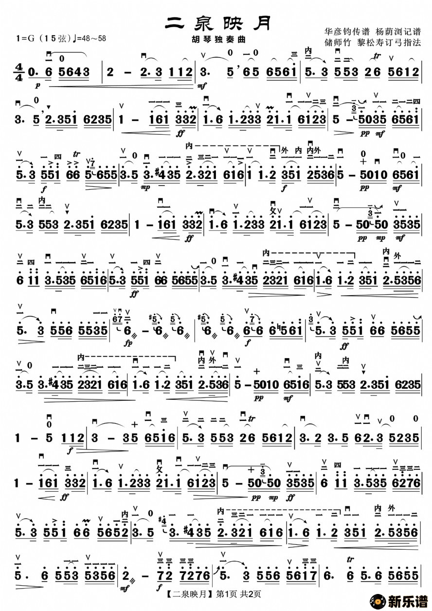 演唱的二泉映月歌词,二泉映月最新曲谱.
