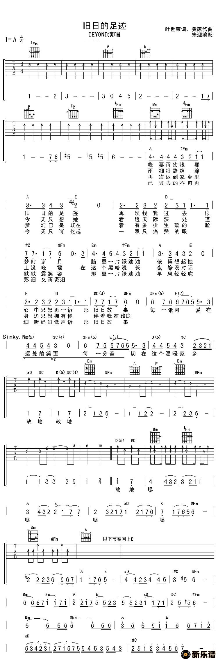 Beyond演唱的旧日的足迹歌词,旧日的足迹最新曲谱.