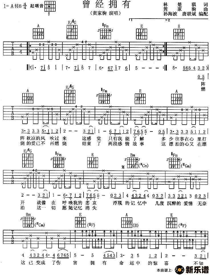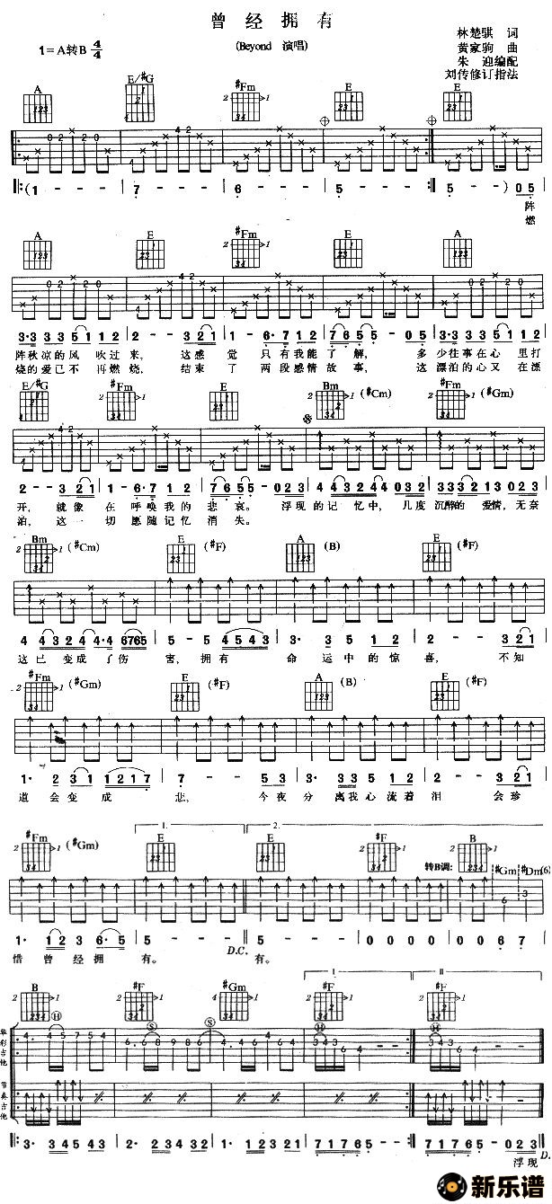 Beyond演唱的曾经拥有歌词,曾经拥有最新曲谱.