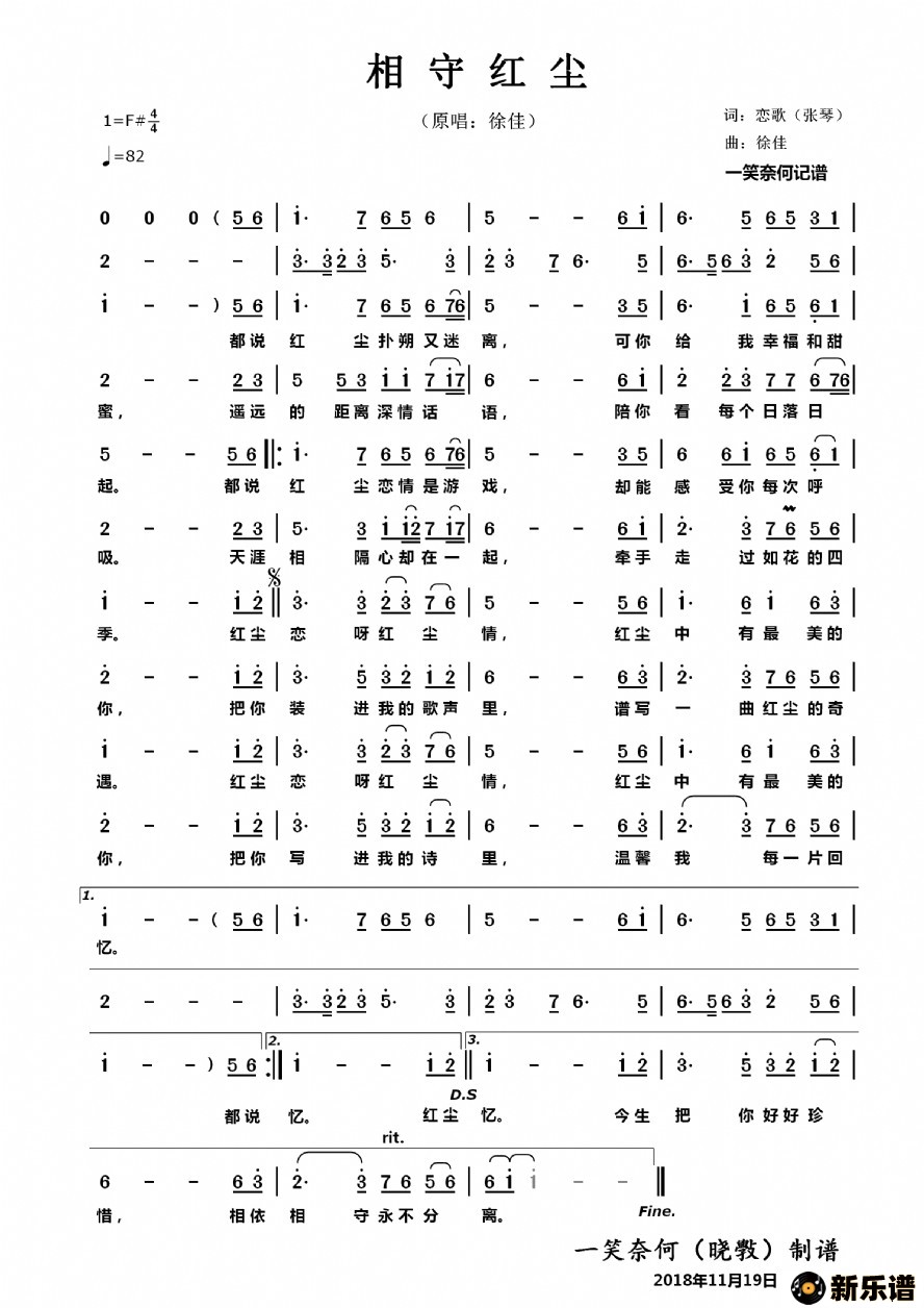 《相守红尘》最新曲谱 徐佳-一笑奈何晓斅制谱