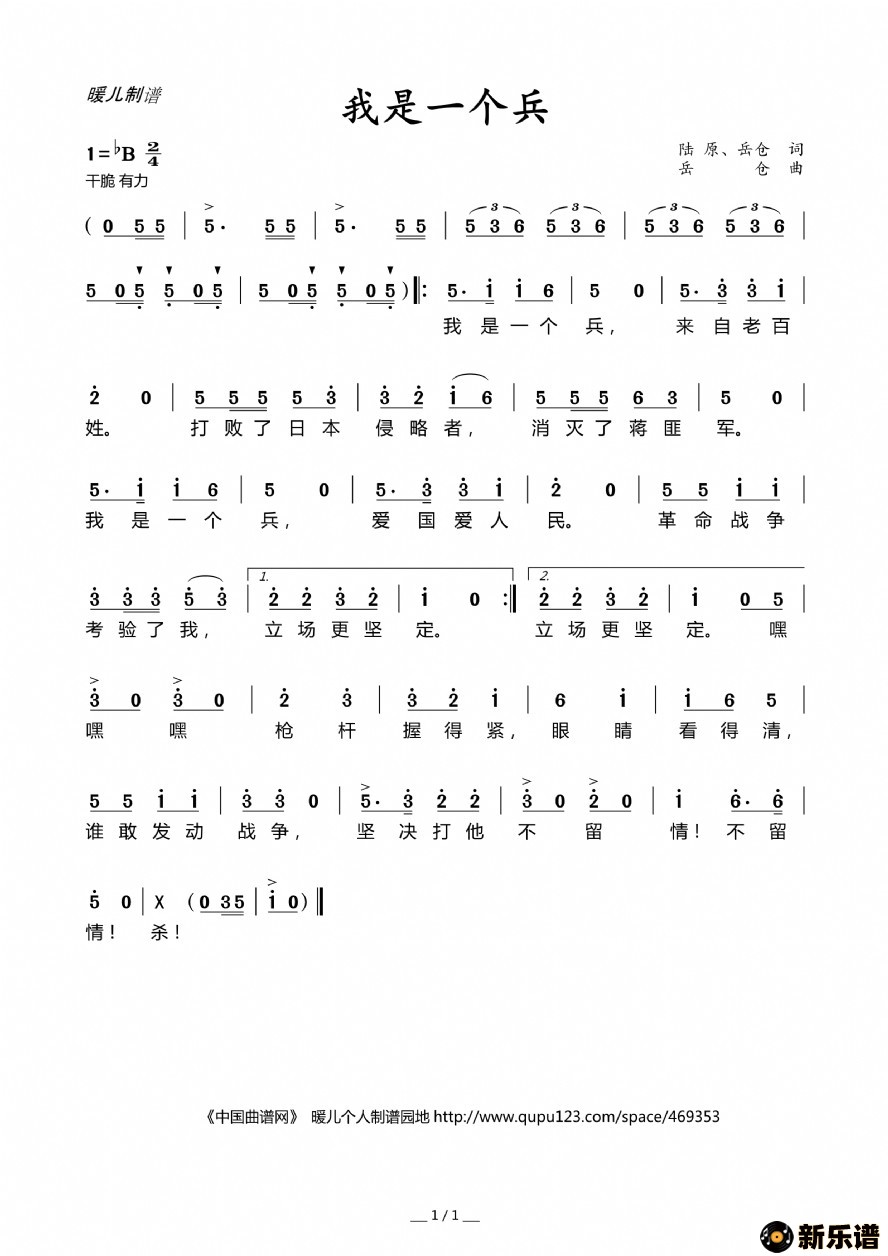 演唱的我是一个兵歌词,我是一个兵最新曲谱.